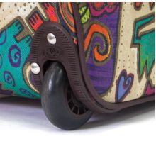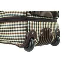 Дорожные сумки на колёсах, в отличие от чемоданов, имеют жесткую стенку-основание только с одной стороны, а значит их легко сложить либо просто уменьшить размер в соответствии с количеством перевозимых вещей. Многие сумки на колесах имеют специальные отделения для обуви и других предметов, необходимых в дороге: ноутбук, планшет, телефон, ключи. Вес сумок на колесах за счет отсутствия цельного каркаса меньше веса чемодана, при этом сохраняется удобство перемещения благодаря наличию колес.